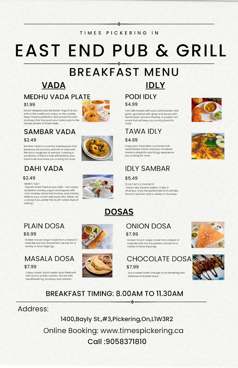 Welcome to East End Pub & Grill, located in the heart of Pickering, Ontario. This vibrant establishment offers a delightful dining experience with a menu that perfectly blends classic pub fare and innovative dishes. Whether you’re stopping by for an indulgent breakfast or a comforting dinner, there’s something for everyone.